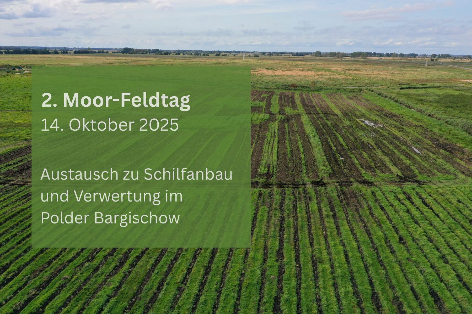 Die MoorAgentur MV lädt ein zum Feldtag auf den Moorflächen im Polder Bargischow. Inhaltlich geht es dort um die Schilfpflanzungen durch Paludi-MV in diesem Sommer. Sie werden Einblicke in die Abläufe der Schilfpflanzung erhalten und können sich mit den Referentinnen und Referenten über die gesammelten Erfahrungen, die Chancen und Potenziale des Schilfanbaus in Mecklenburg-Vorpommern sowie die Verwertungsmöglichkeiten austauschen. Der Feldtag findet am 14. Oktober statt. Die Teilnehmerzahl ist begrenzt, daher lohnt sich eine frühe Anmeldung. Mehr Informationen erhalten Sie bei der MoorAgentur MV. Den Link zur Anmeldung finden Sie hier.
